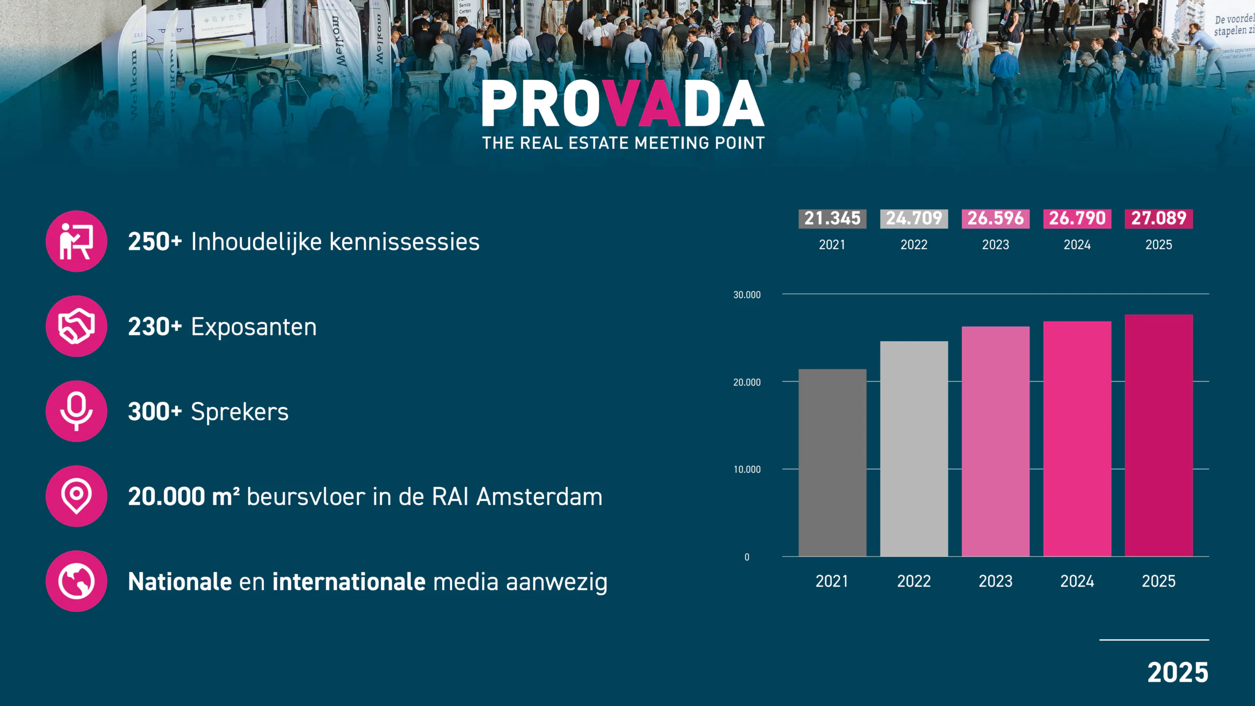 PROVADA is known as the largest real estate fair in the Netherlands. With over 200 exhibitors from the real estate sector—from project developers, investors, builders, architects to financiers, advisors, real estate agents, and housing associations—and more than 70 municipalities, provinces, and the national government, the public sector is well represented at this real estate fair, where the public-private connection is central to the program.