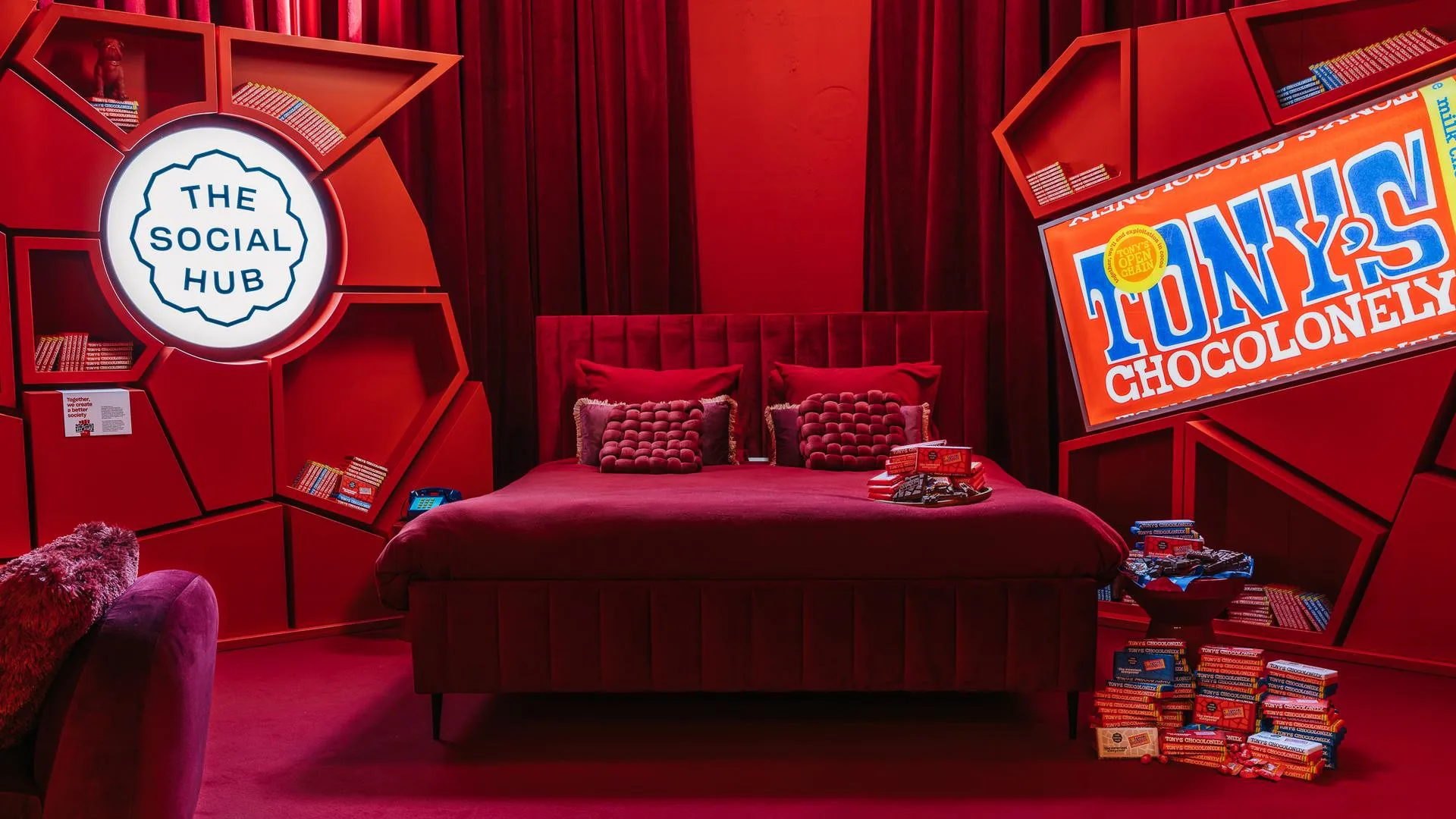 The Social Hub en Tony's Chocolonely delen eerste beelden van hun chocoladehotelsuite,de 'world's sweetest sleepover.'